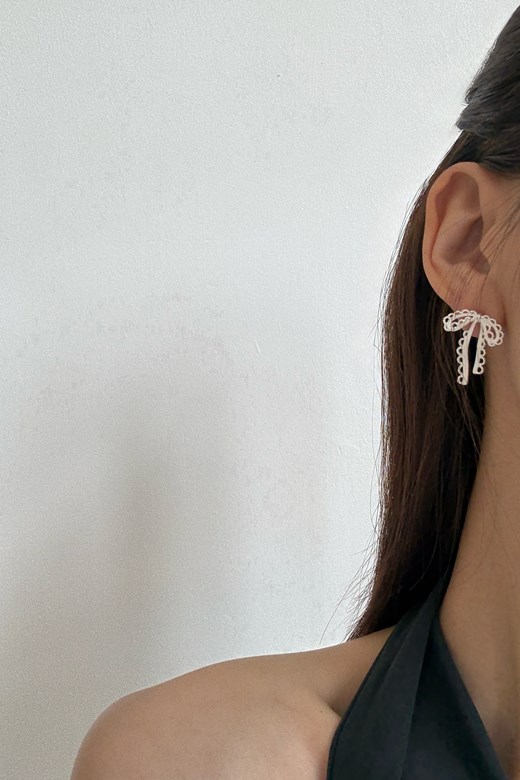 30 小法式蕾絲蝴蝶結耳環
