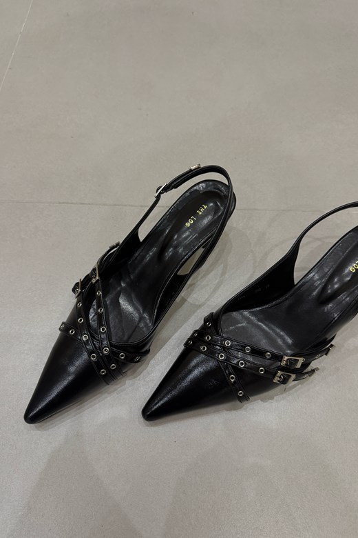 24 繞帶金屬孔洞尖頭後空低跟鞋(版型偏小)