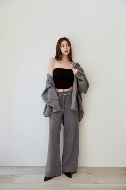 極簡厚磅針織長褲